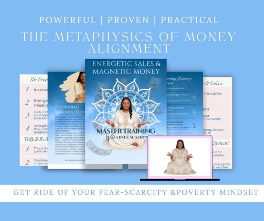 💫 About the Visionary – Venus M. Scott is an Expert Self-Mastery Mentor, Sacred Wealth Educator, and High Priestess of Transformation. With over 15 years of experience blending neuroscience, metaphysics, and divine feminine wisdom, she’s guided thousands in activating their purpose, aligning with abundance, and embodying the highest version of themselves. Known for her signature method, “Starve the old and feed the new,” Venus helps spiritual women/men rewire their nervous systems, upgrade their energetic codes, and manifest with ease — without retraumatization or hustle.